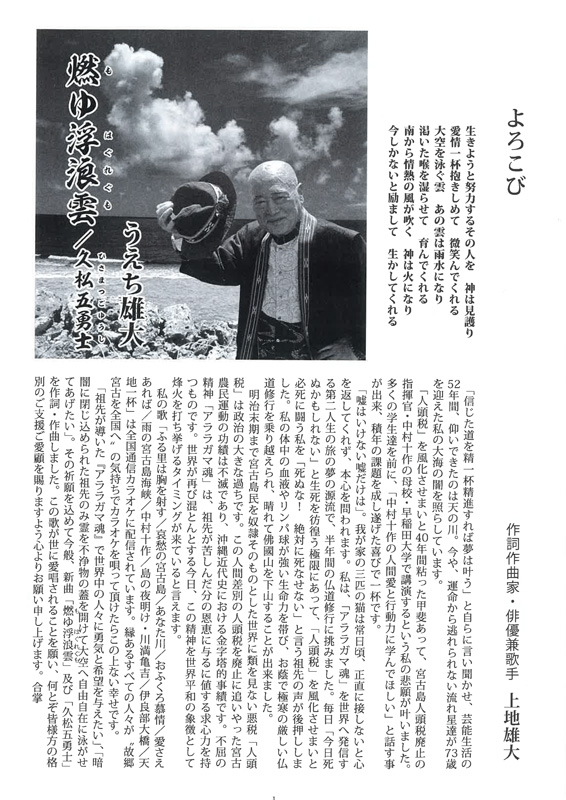 2011年6月 うえち雄大 全国メジャー第一弾「おふくろ慕情/哀愁の宮古島」のCD販売に伴い、
