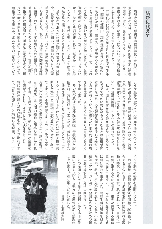 〇琉球新報(2014年11月30日(日)発売)にうえち雄大の記事『人頭税語り部25年 現代に通じる教訓』が掲載されました。